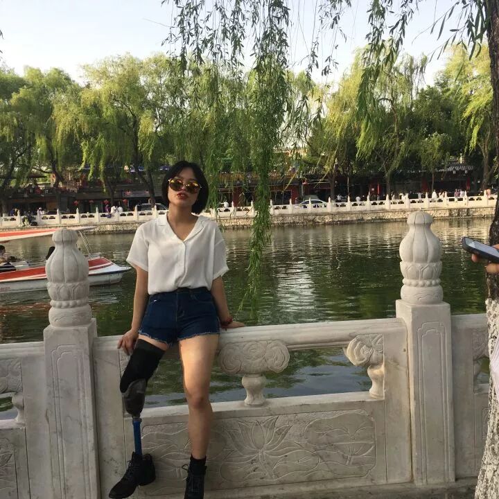 4岁的时候,妈妈带她去家对面的一个诊所看病,因为太害怕针头,她害怕地跑出诊所,不幸的是跑出去的时候被货车撞了,而妈妈为了救她,冲到了撞人的大巴下。醒来发现,她的右腿已经从膝盖以下被截肢,而妈妈,也永远地失去了一条左腿。